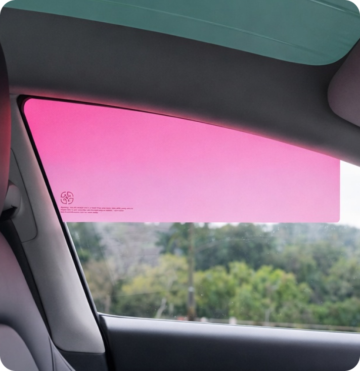 As with any window accessory, SunShade should never obstruct your blind spot or block your line of sight. Because SunShade is not transparent, please ensure it sits outside your primary field of vision before driving. If it doesn't feel safe, don't drive with it — your safety comes first.